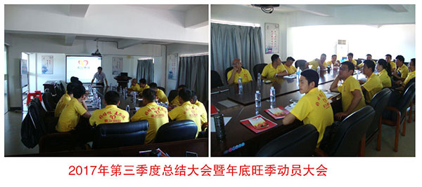 本次會議由營銷總監(jiān)黃金旺主持,會議在陳飛鵬董事長及陳進鵬副董事長致辭講話